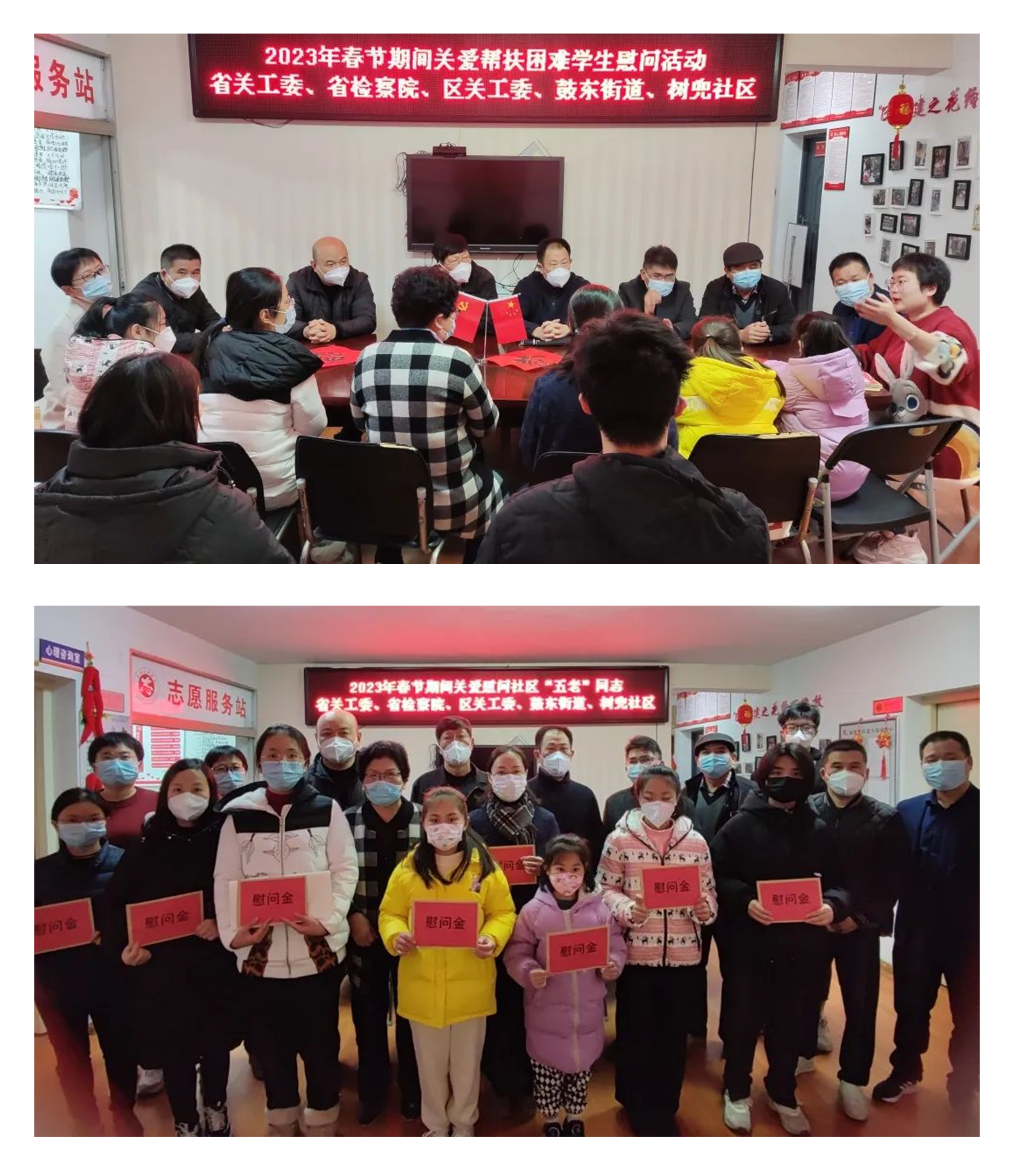 关工委、鼓楼区关工委、鼓东街道及树兜社区关工委联合在树兜社区新时代文明实践站开展“老少同聚 共闹元宵”暨关心关爱慰问活动。