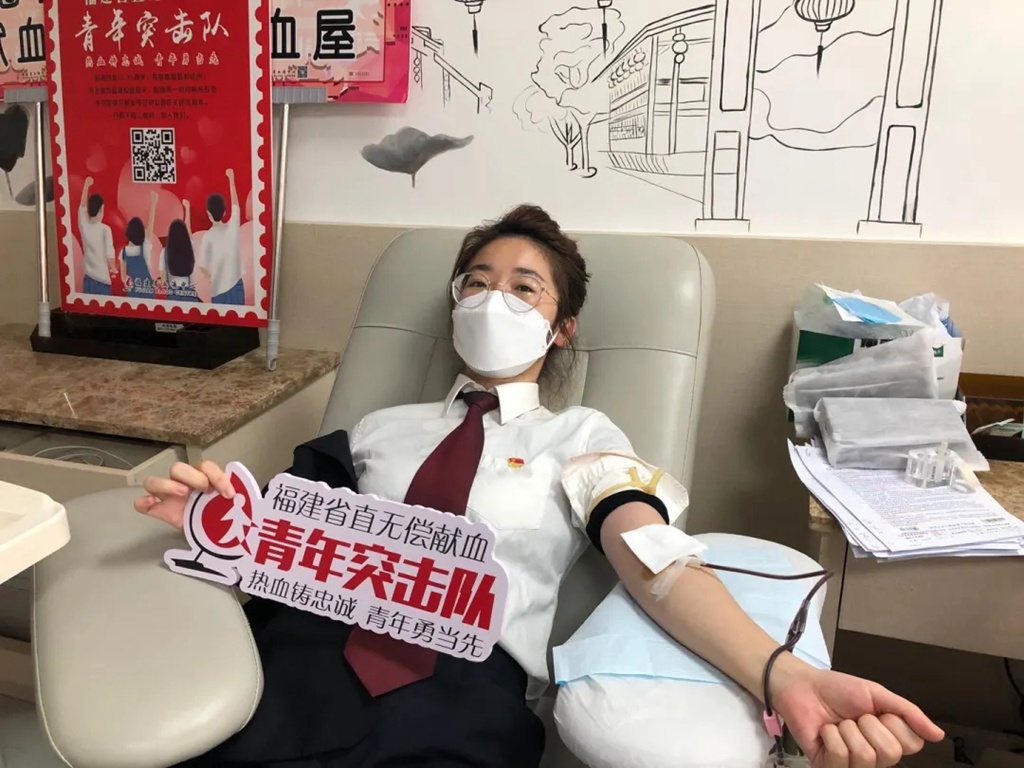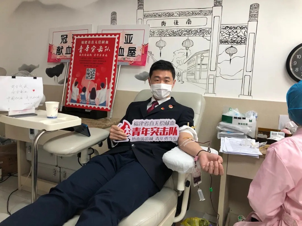 为庆祝第17个世界献血者日,感谢广大无偿献血者的无私奉献以及社会各界对无偿献血事业的关心支持,进一步营造无偿献血氛围,6月11日,福建省2020年“世界献血者日”活动以视频会议形式举行,主会场设在福州,各地市设分会场。活动现场特别邀请了8位无偿献血者代表到场。其中,足彩投注 干警胡文颖作为疫情期间应急献血的省直无偿献血青年突击队队员代表、省直无偿献血青年突击队宣传员。在6月14日国际无偿献血日,胡文颖赴台江万达献血点进行志愿服务,服务参加无偿献血的群众,热血送暖,爱心接力。